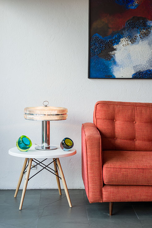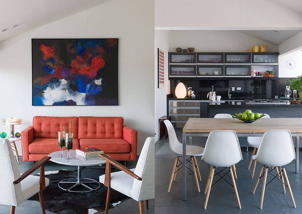 Entre tanto, la estética de este apartamento tiene un marcado acento retro dado por accesorios de los años cincuenta, sesenta, setenta y ochenta, y muebles refaccionados o fabricados con la inspiración de modelos existentes en esas décadas. Varios de los objetos fueron hallados en mercados de pulgas y anticuarios, siguiendo el gusto sencillo y sobrio de Londoño, que además de diseñar muchas de las piezas del mobiliario terminó enamorado del espacio y decidió acogerlo como su propia casa. Penthouse Moderno Con Acento Retro