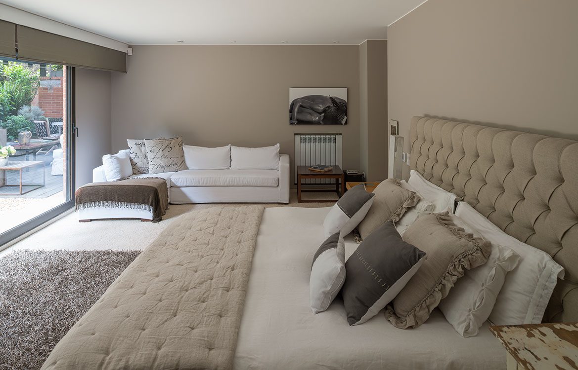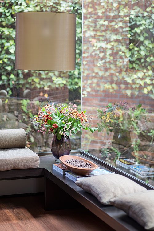 Tras un arduo trabajo de jardinería, realizado incluso en los muros comunes del edificio, lograron que las tres habitaciones tuvieran una vista hacia la naturaleza que, por momentos, hace creer al espectador que está en el campo. Cada habitación tiene detalles de decoración que reflejan la personalidad de quien la habita. La de la dueña mezcla piezas de diseñador con elementos antiguos que muestran en su exterior el paso de los años, porque para ella, este es un apartamento para vivirlo, para que las personas sientan calor de hogar, pues no se trata de un espacio pensado para un catálogo.