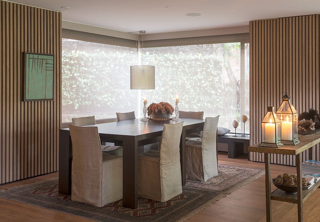Dos años tardó la propietaria para encontrar en Bogotá, una ciudad donde poco a poco los espacios verdes son más escasos, justo lo que estaba buscando. Las especificaciones eran puntuales: quería una terraza o un jardín y mucha naturaleza alrededor. Además, necesitaba tres garajes, algo difícil de conseguir en esta época.