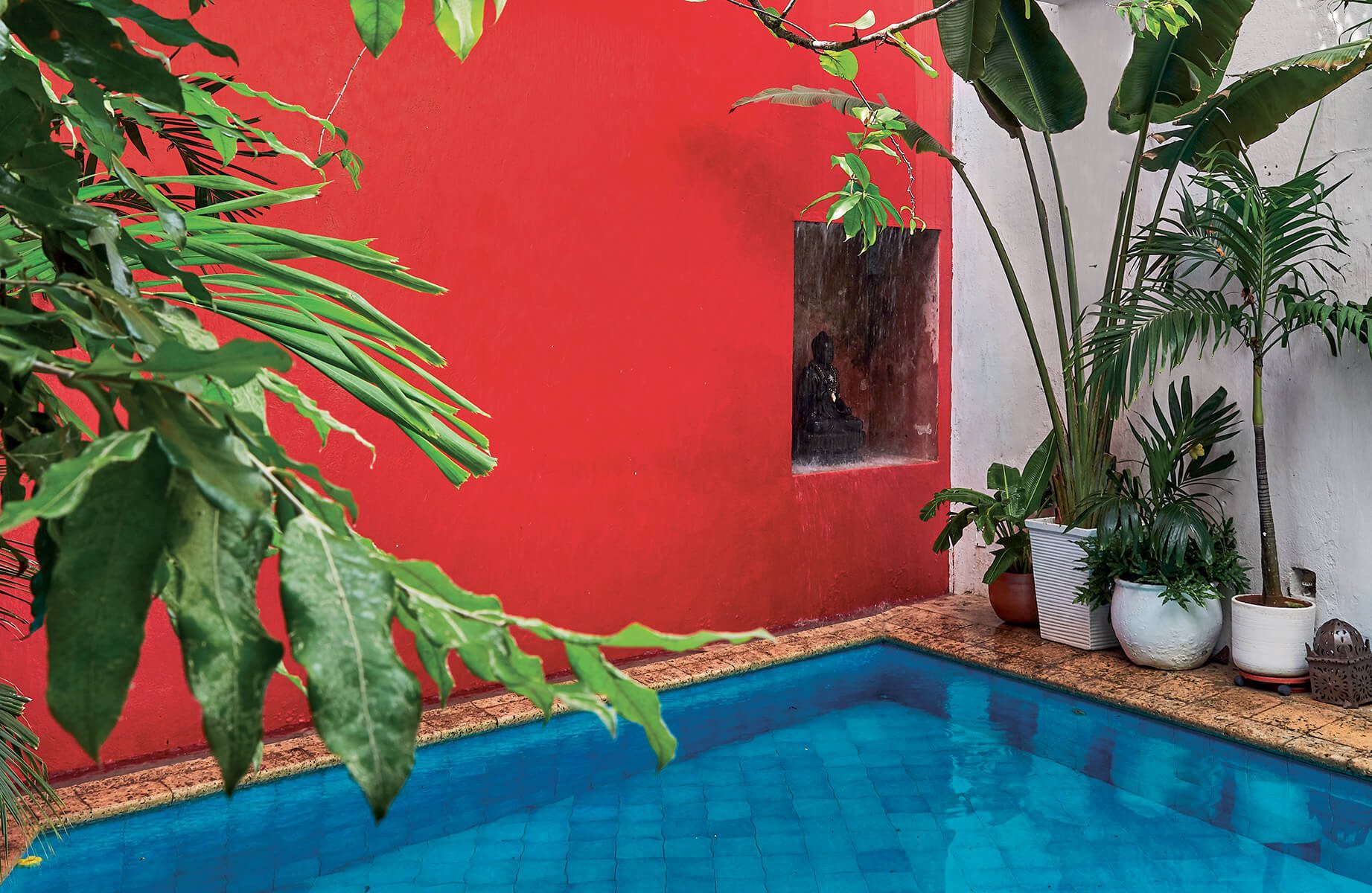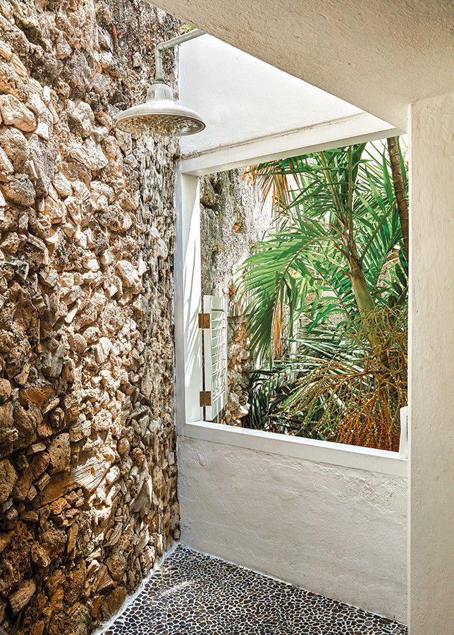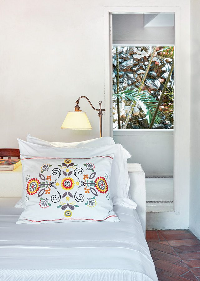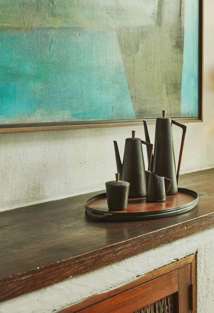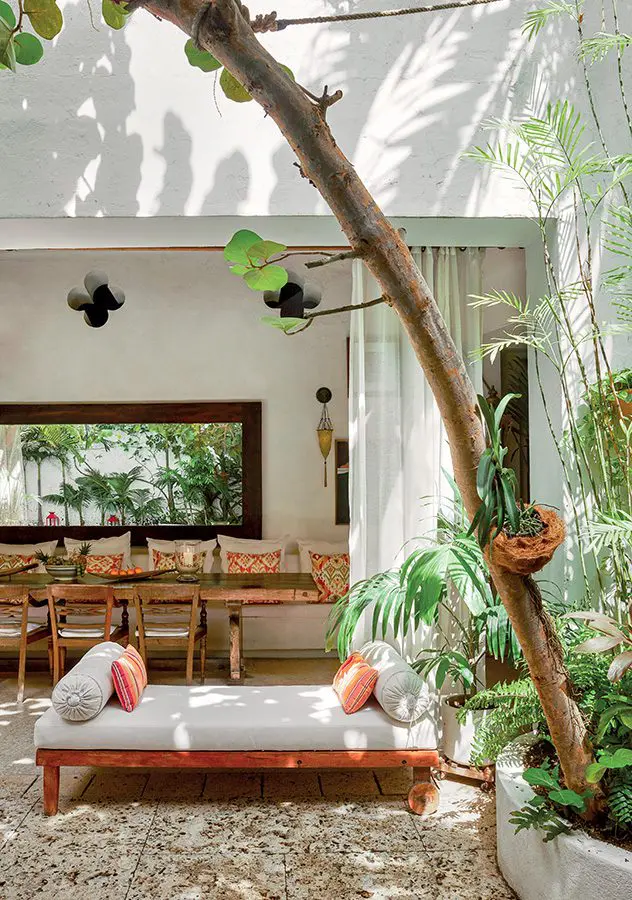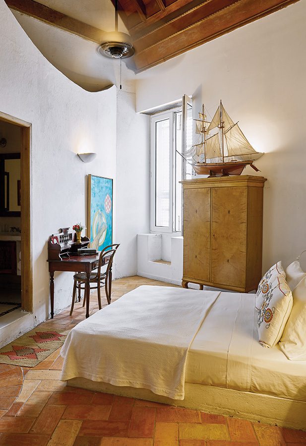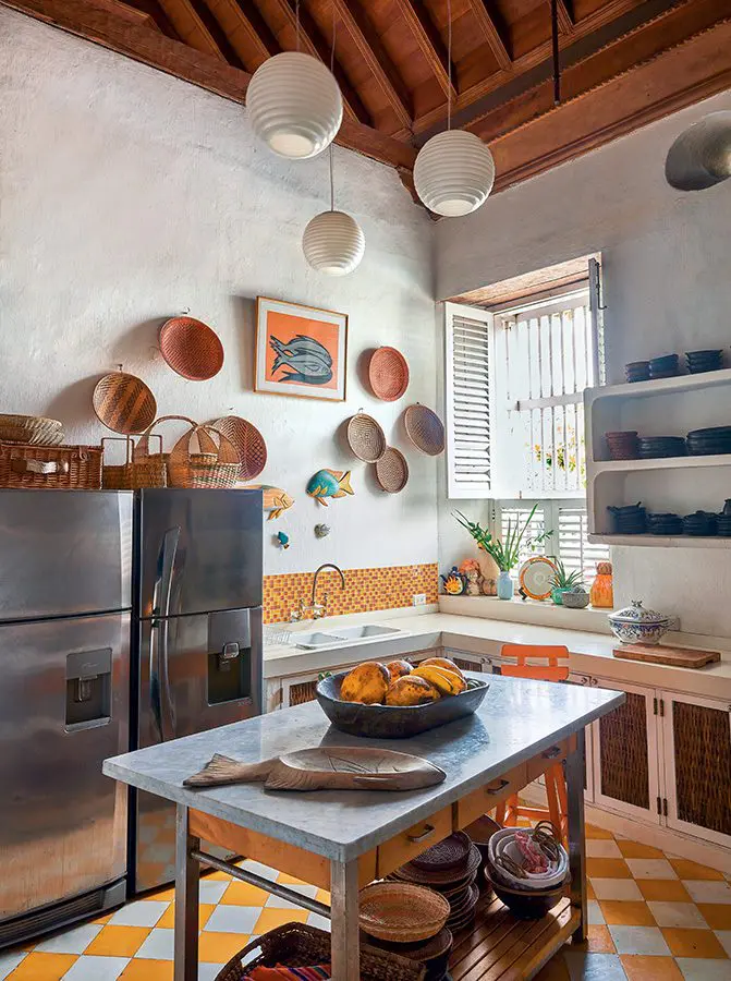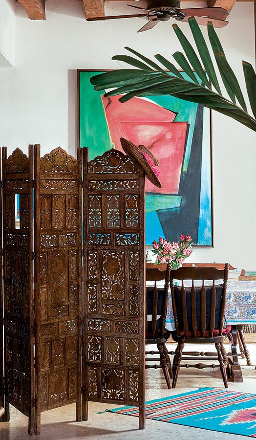 Después de vivir en Nueva York, su dueña se trasladó a Cartagena, donde reside hace diez años. De ahí que haya objetos de distintas partes del mundo; por ejemplo, los muebles fueron adquiridos en anticuarios de la ciudad, pero la mayoría de las piezas decorativas provienen de países de Asia, África y Norte América.