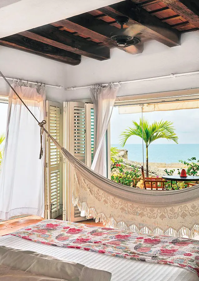Muestra de ello es que las terrazas no solo permiten una serie de conexiones visuales con el entorno, sino que se encuentran pobladas de flores y colibríes.Un refugio de arquitectura colonial en cartagena cargado de color