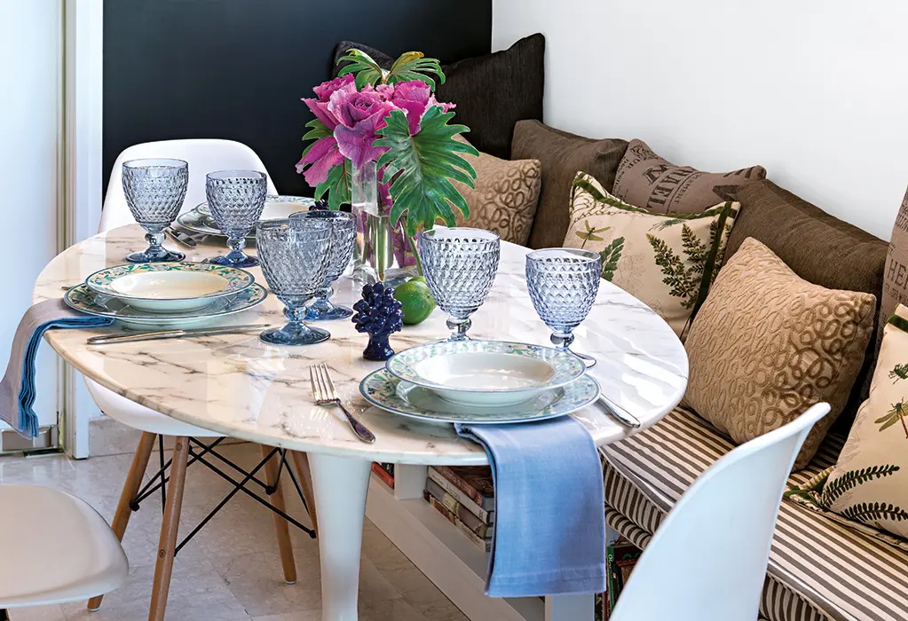 Asimismo, el hecho de reutilizar muebles y herencias para darles un nuevo sentido y uso, llena de calor humano e historia este apartamento. Por ejemplo, la mesa de centro de la sala es la célebre Barcelona Day Bed, diseño del reconocido arquitecto y diseñador industrial alemán Mies van der Rohe, donde reposan libros de la obra renacentista de Leonardo da Vinci, de fotografía latinoamericana y de editoriales como Taschen.