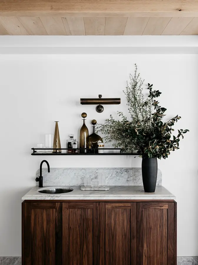 La apertura a gran escala exploró la oportunidad de vivir y comer en el exterior, un aspecto integral del cliente que aborda la necesidad de espacios de entretenimiento, esenciales para un «hogar lejos del hogar». La casa se centra en el «hecho a mano». Los accesorios, acabados, iluminación y revestimientos expresan un punto de referencia artesanal. Los interiores doblados, la paleta tenue y la calidad hecha a mano crean una atmósfera vivida para el cliente, un elemento importante para que experimenten un sentido de lugar e historia.