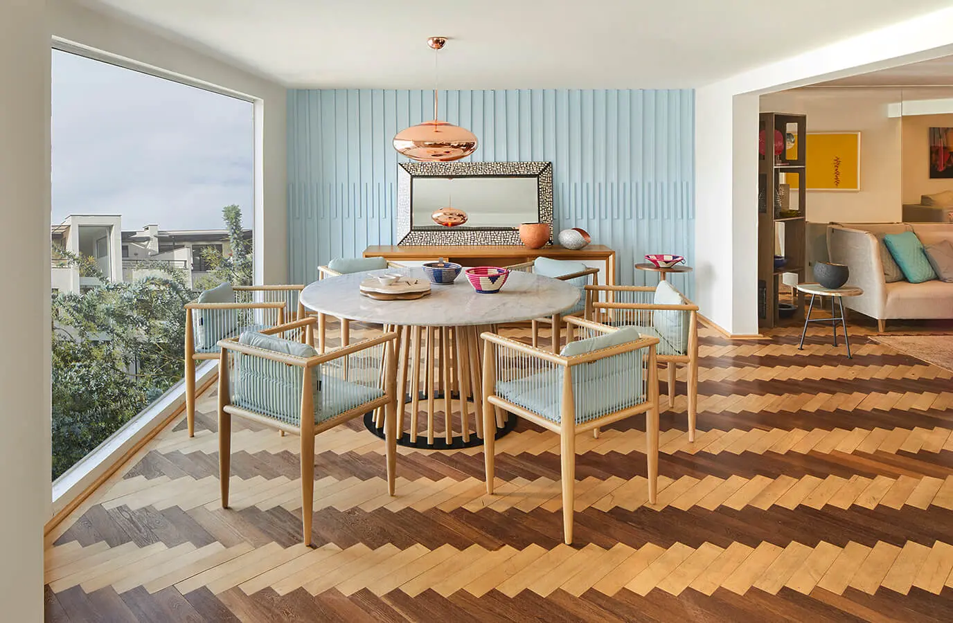 En cuanto a iluminación, “el dorado (también mate) mezclado con el negro y los aglomerados de madera será una constante en las luminarias, que presentan formas con cortes limpios y simples”, apunta Juan Carlos Recamán, director comercial de Eglo Colombia. Sin embargo, también estarán presentes materiales como el concreto y tonos como el plata. Las luces led, cuyo menor consumo de energía ayuda al cuidado del medioambiente, se mantienen –incluso compañías como Eglo Colombia las regalan con sus lámparas para incentivar su uso–; solo son remplazadas en diseños de corte más vintage, “donde las bombillas de filamento son un complemento importante, parte del diseño”.