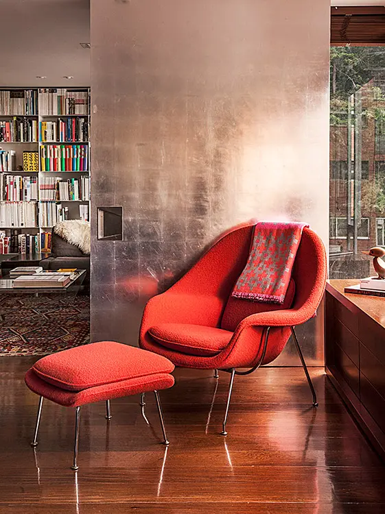 La womb chair with ottoman, creada por eero saarinen.