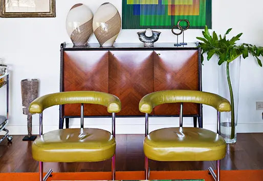 Los propietarios del apartamento, que bien podría ser un inmueble de los años cincuenta, comparten un gusto muy especial por la música y por ello ubicaron en la sala un mueble en el que guardan gran parte de su colección de vinilos. Las lámparas, todas distintas, son protagonistas de la decoración y para generar un look de los años veinte y treinta usaron en los baños baldosín de cemento de Pompeya, fábrica ubicada en Barranquilla, especializada en reproducir losas al estilo colonial republicano.