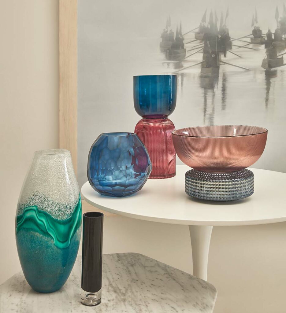 Las vasijas y floreros de vidrio siempre serán elementos decorativos que aportan elegancia a un ambiente, gracias a la versatilidad de este material. Por eso le pedimos a Mónica y Laura Barreneche (El Buen Ojo) que preparan un set decorado con piezas de este tipo.