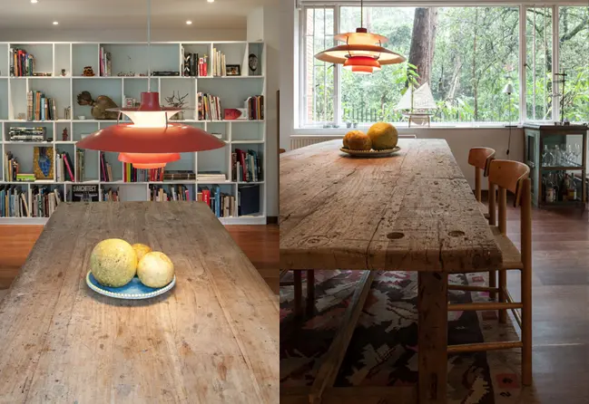 Los propietarios, quienes se consideran fans de anticuarios y mercados de las pulgas, consiguieron varios de los objetos que decoran el apartamento en este tipo de lugares. Así sucedió con el kilim antiguo del comedor, la batea en la que ponen la leña, el bar  de vidrio ubicado en la sala, una silla antigua de peluquería y las mesas de noche de la habitación principal.