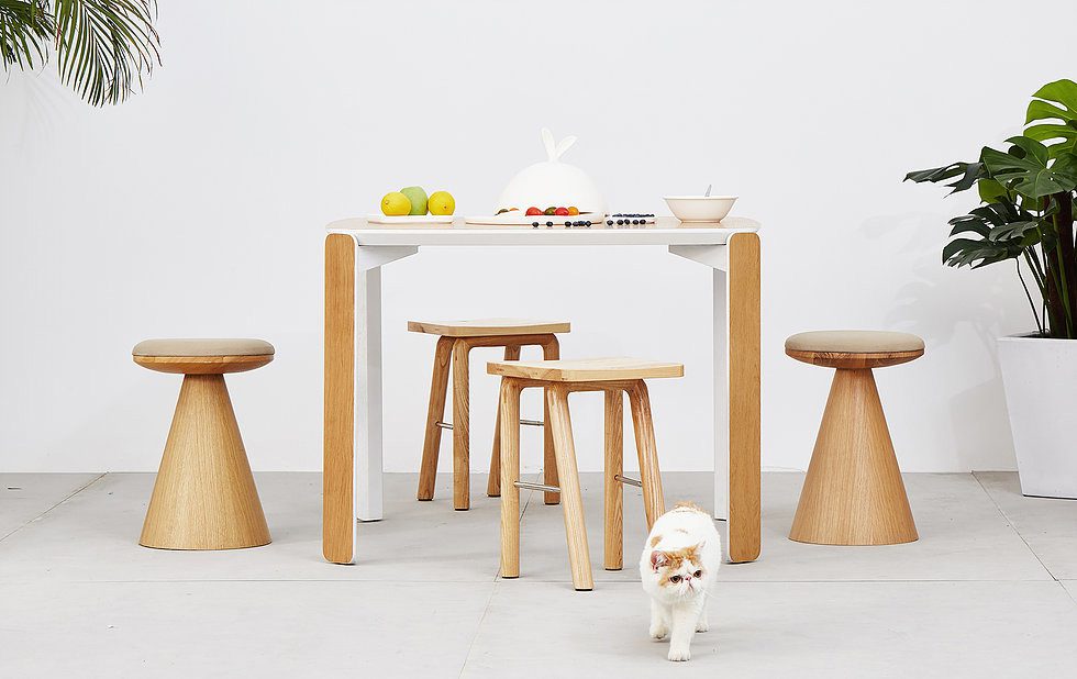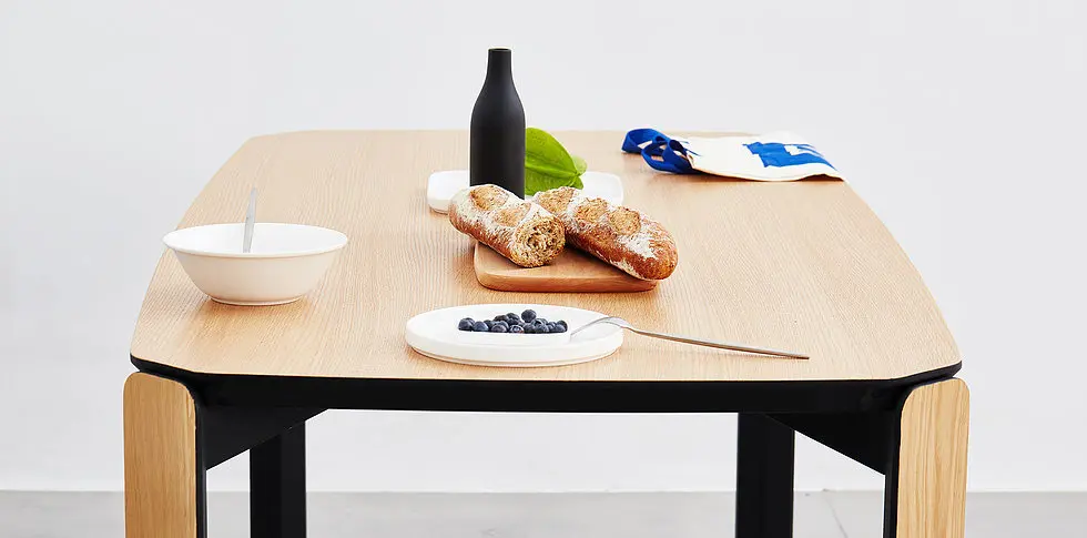 Un proyecto por encargo de Inyard, 45 es una colección de mesas de comedor, escritorio y auxiliarles en madera de roble, sus caras internas, están facetadas a 45º , creando un plano de unión reforzado con una lengua metálica. La colección de mesas, ofrece la posibilidad de aproximadamente 100 combinaciones, debido a la variedad en tamaños , alturas y colores disponibles.