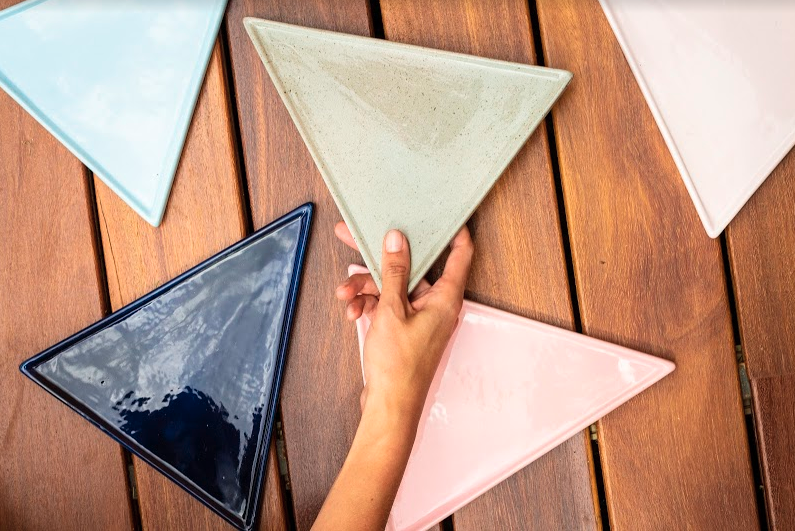 “Luego del primer año nos pasamos a un taller más grande, compramos hornos nuevos y definimos la materia prima y la paleta de colores”, explica Juliana. Sus vajillas están inspiradas en lo natural, en lo artesanal. Sus formas son orgánicas, alejadas de las ilustraciones y acompañadas por tonos vivos: “Somos personas alegres y nos gusta reflejar eso”. Para su nueva colección crearon formas abstractas y coloridas, con el objetivo de que cada pieza sea única. “No podemos manejar el resultado final, debido a que la cerámica se quema a 1.200 grados centígrados y los colores en altas temperaturas tienen una reacción diferente, por eso pueden variar. Siempre es una sorpresa cómo van a salir. Es un proceso difícil de controlar”.