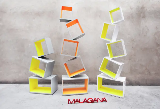 Los estantes de Equilibrium, que resisten hasta 60 kilos, vienen con un acabado de chapa natural de madera de Nogal, su increíble posición permite mantener los libros inclinados y organizados, y lo mejor, no necesitan herramientas para su montaje. Este accesorio de creación contemporánea es el producto estrella de Malagana Design, la firma de diseño fundada por Gómez hace tres años.