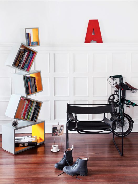 Alejandro explica que uno de los retos fue solucionar el tema funcional en el momento de pasar de un prototipo a un producto comercial. «Trabajé con un ingeniero con el que desarrollamos unos herrajes especiales que unen cada cubo pero a la vez permite desarmarlo sin comprometer la estabilidad del mueble». Su forma liviana y cargada de carácter, logra enriquecer y alegrar cualquier espacio, pues no fue diseñado para ocupar un lugar en específico, por el contrario una de sus mas grandes cualidades es que enriquece cualquier rincón que ocupa, pues su concepto, sin duda, es sorprender. Debido a su acogida, Alejandro presentó la edición Equaty, una versión mas pequeña que «mantiene el mismo concepto pero en términos espaciales y de amoblamiento abre opciones que no eran viables con Equilibrium», comenta el diseñador.