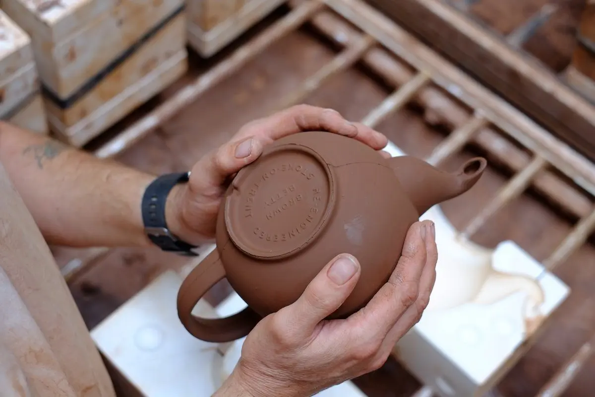 La combinación del esmalte de Rockingham y la arcilla roja fue y sigue siendo fundamental para el éxito de Brown Betty, prolongando la vida del objeto para su propietario y, posteriormente, a través de la historia. La arcilla de Staffordshire utilizada para hacer una Brown Betty se refinó por primera vez a fines del siglo XVII. Dos hermanos holandeses, John Philip Elers y David Elers jugaron un papel clave en este proceso. Comenzaron a reproducir las teteras de moda y caras de Yixing en un pequeño taller en Bradwell Woods, North Staffordshire, Inglaterra. El refinamiento de esta arcilla local dio lugar a una nueva era de experimentos tecnológicos en el área, y ahora se considera un catalizador clave para la industrialización de las seis ciudades que ahora conforman Stoke-on-Trent.