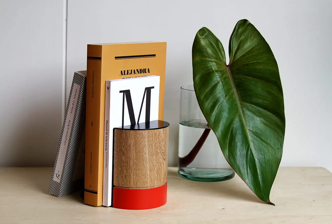 Con una estética que tiende a lo circular, Abad y Bianchini buscan solucionar interacciones sencillas entre los espacios y sus habitantes. Un ejemplo de esto es el Cuña libros Diálogo “Diálogo es un diseño pensado a través de los elementos complementarios y contrapuestos que se encuentran en un objeto básico como un cuña libros: es el punto de encuentro entre la funcionalidad de la lámina de acero con la tradición decorativa del objeto”, comentan los diseñadores. “Es una conversación entre la tecnología del corte laser y la artesanía de la madera local trabajada en un torno manual. A estos elementos se suma el juego geométrico de llenos y vacíos y la búsqueda de proporción entre colores complementarios”, añaden.