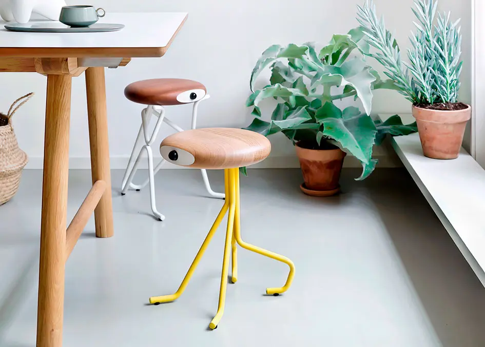 Companion se puede utilizar como butaca, mesa auxiliar o juguete, la colección incluye dos taburetes diferentes y están disponibles en cuatro colores: negro, blanco, amarillo y azul.