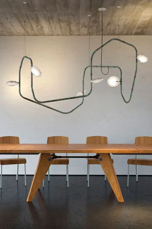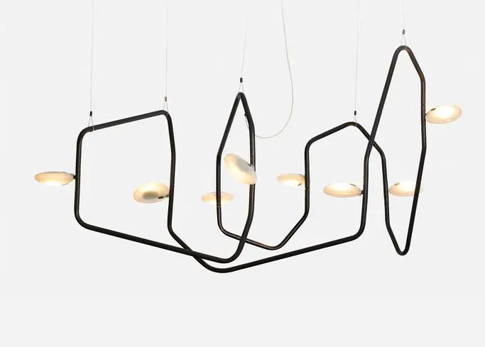 Gracias a la composición modular de sus brazos de acero tubulares, cada instalación es única. Así mismo de personalizable es su luz. El tamaño del espacio y el estado de animo de sus habitantes dictan la forma del diseño y el tipo de ambiente de la Palindrome.