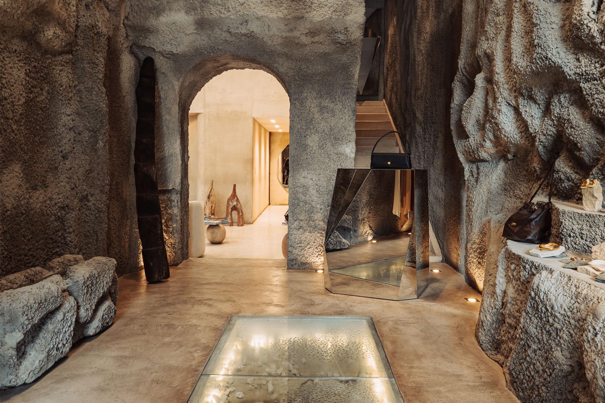 En el caso de Baobab Bogotá, se creó una atmósfera cavernosa mediante el uso de diversos recursos materiales, que implicaron una experimentación constante. “Siempre he sido un apasionado por las posibilidades que ofrecen los materiales en el campo del diseño interior. Por eso, en este proyecto ensayamos varias veces cuál era el material idóneo para la creación de esta estética tan sui generis”.