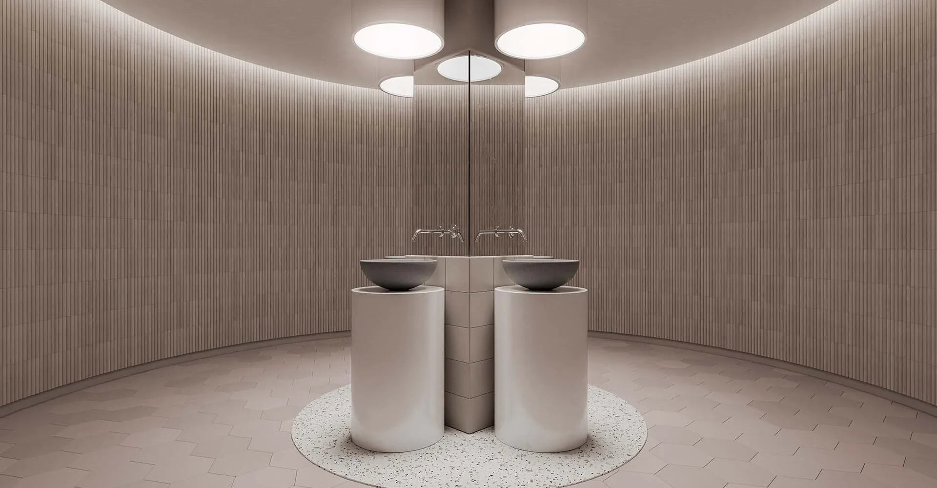 Por otro lado, en la arquitectura la tendencia propone formas orgánicas generadas con IA, celosías en vidrio que filtran la luz y mobiliarios que transmiten confort. En baños y cocinas la propuesta está pensada para inspirar serenidad, por ejemplo, lavamanos de curvas sutiles, griferías con brillo metálico y materiales que reflejan el entorno como espejos líquidos.