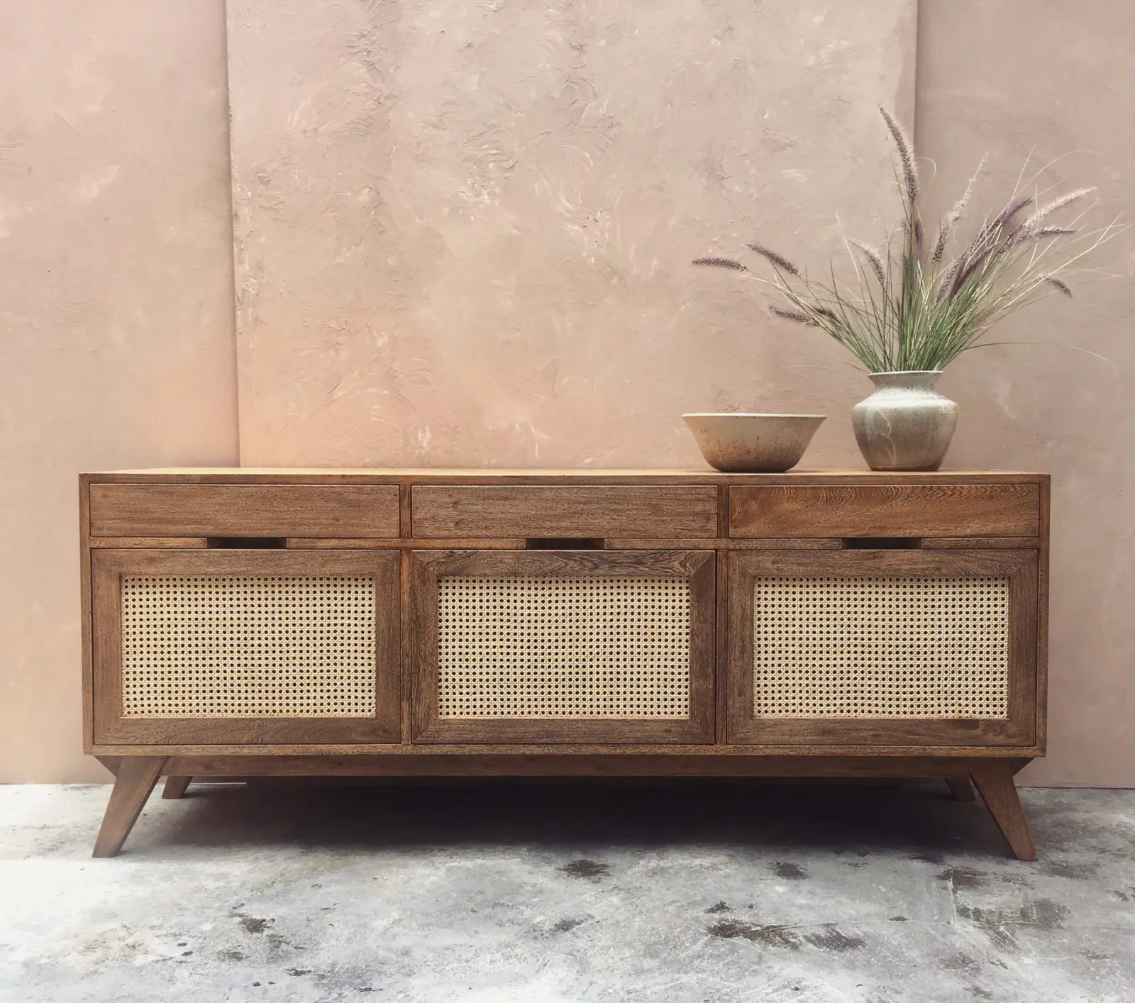 Lo dotamos de tres cajones amplios en la parte inferior, capaces de soportar más de 40 kilos cada uno, y tres pequeños en la superior, que forman un cuerpo simétrico, alivianado por el uso de un tejido en fibra natural de mimbre”, explica Cian.