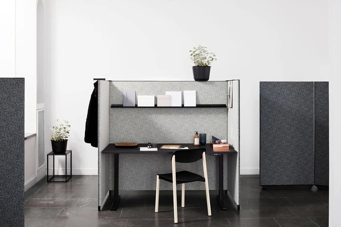 ICF presenta dB un sistema de detección de sonido ligero y absorbente diseñado por Thomas Bernstrand para Abstracta. El objetivo fue proporcionar al usuario una serie de pantallas y accesorios que permiten la capacidad de configurar y personalizar su espacio de forma productiva para el individuo. Caracterizados por una gran atención a los materiales y un diseño sin concesiones, las pantallas dB vienen en varios tamaños y se pueden tapizar en casi cualquier textil. Se colocan sobre una base, lo que les permite tener el ángulo deseado si se combinan entre sí.