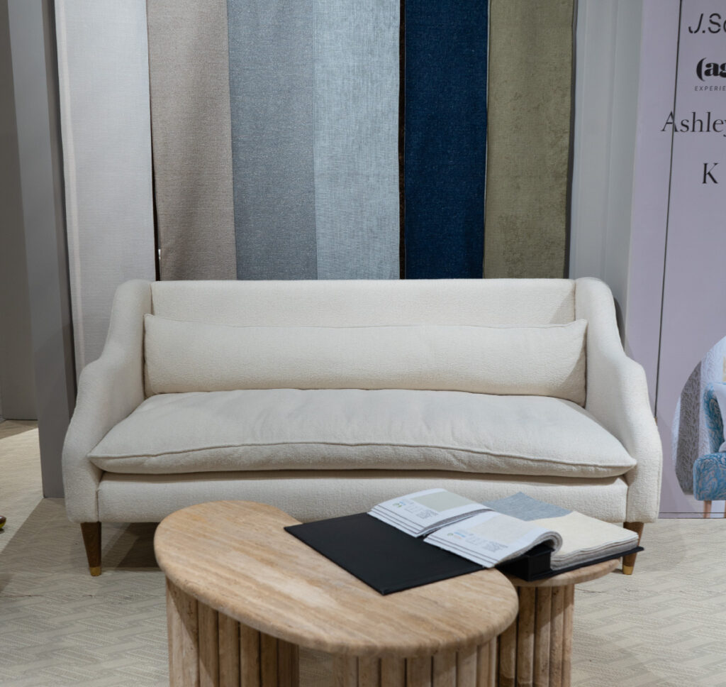 En su espacio se podía encontrar una exhibición de productos y materiales. Era una biblioteca de muestras para que los clientes pudieran darse una idea de las posibilidades a las que se puede llegar con los textiles de la marca. Además, tenían mesas de reuniones para concretar negocios y conversar sobre diseño.