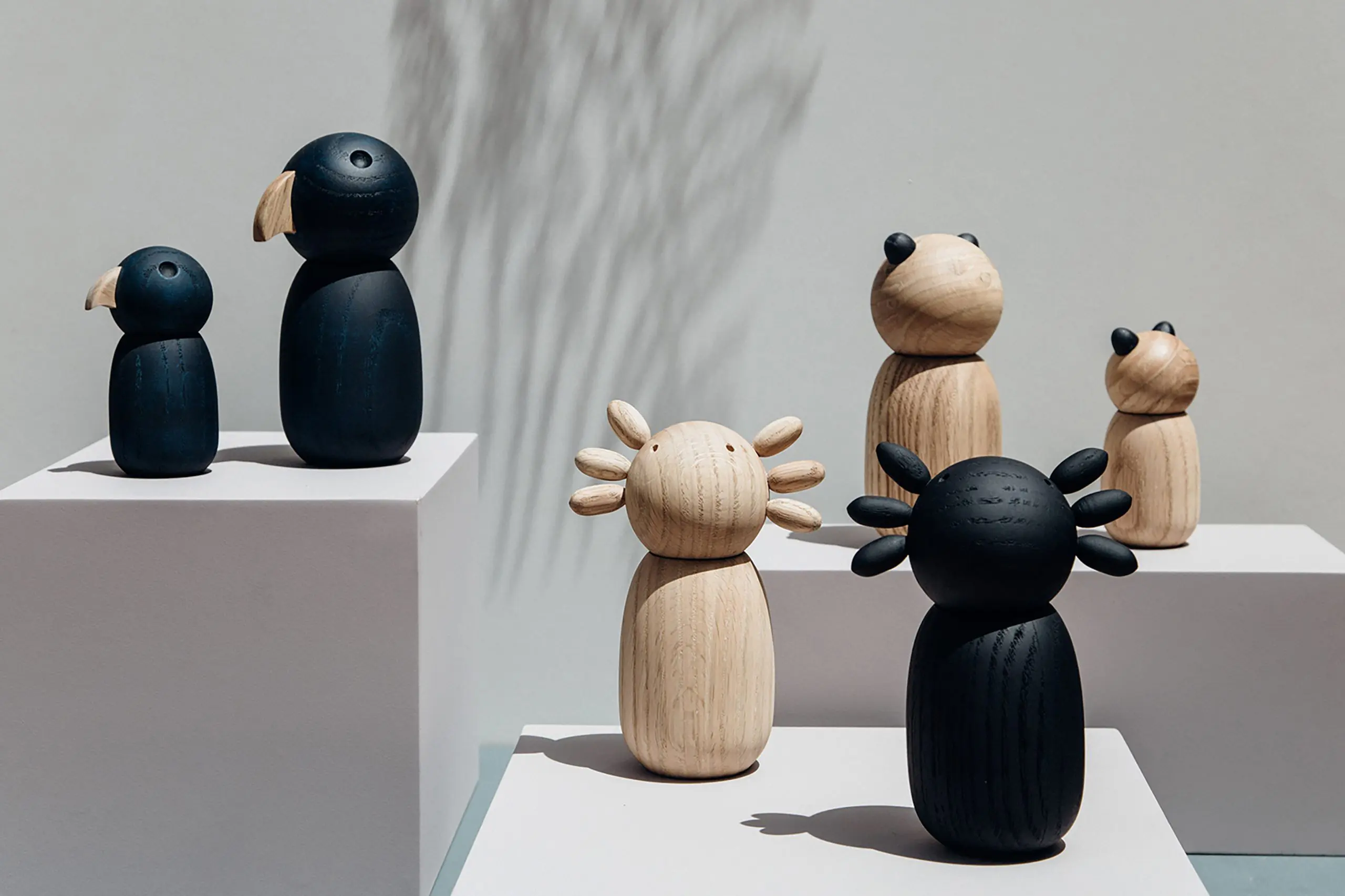 Las puestas en escena de Hechizoo, de Jorge Lizarazo y Diseño Colombia, una propuesta de Artesanías de Colombia, permitieron una experiencia más táctil y cercana a la vida doméstica, sin perder ese hilo conductor único que transmite el trabajo artesanal contemporáneo. En un espacio diminuto, el estand de la marca colombiana Vrokka, liderada por el diseñador santandereano Juan Carlos Franco, de la mano del diseñador mexicano José Bermúdez, logró sintetizar el discurso de lo que significa el diseño joven latinoamericano. Por medio de maderas claras que contrastaban con un verde oliva petróleo transmitieron un mensaje de menos es más, y la importancia de saber editar en este campo. Desde una estética de influencia danesa, la colección Fauna, de Franco y Bermúdez, pretende crear conciencia sobre tres especies animales nativas de Latinoamérica en vías de extinción.