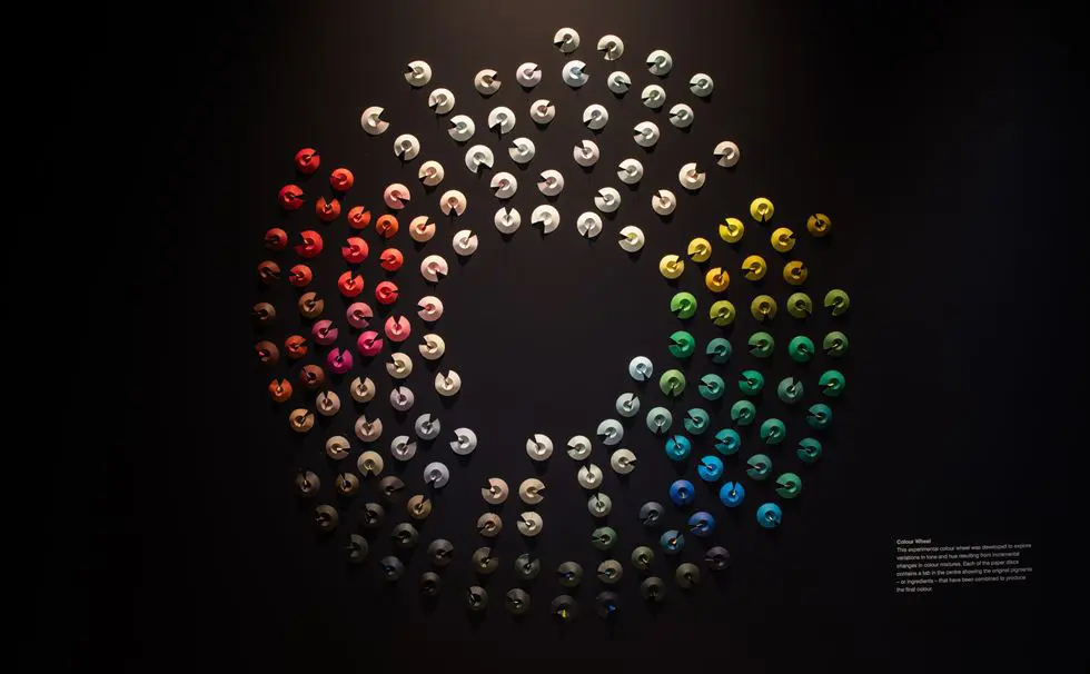 La muestra se divide en espacios separados que simulan las condiciones de la luz del día en determinados momentos: mañana, mediodía y tarde. Estas tres fases exploran el impacto del cambio de la luz del día en nuestra percepción del color. Cada instalación incluye una serie de objetos tridimensionales, así como textiles, algunos de los cuales se tejen a mano, mientras que otros se producen en telares industriales.