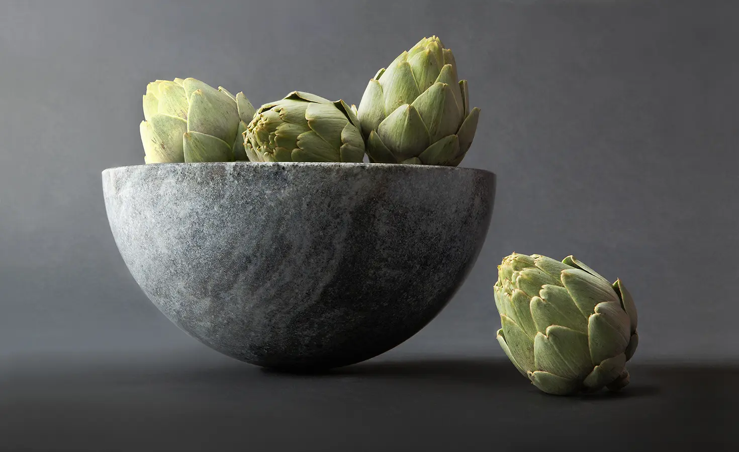 Aunque el granito es pesado, una característica clave en toda la colección hace que las piezas sean fáciles de mover. Las ranuras de dedos afiladas se colocan estratégicamente para permitir al usuario agarrar objetos y levantarlos de las superficies. Las siluetas a lo largo de la colección de granito son un juego de geometría, proporción y precisión, con contrastes de varios tonos y tipos de granito pulido y afilado, dentro de los cuales, piezas como: El mortero y pilón SM, el exprimidor Citrus Reamer, los candelabros Barbara, los platos Hamara y el recipiente Ittoli, demuestran la versatilidad que brinda le piedra nacional finlandesa.