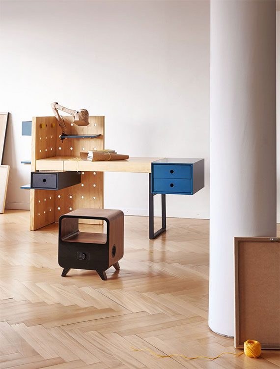 Para AXXIS, La Geppetería propone un escritorio modular en madera de pino y metal. Su nombre es Hidalgo y se puede adquirir por pedido en colores como: azul petróleo, gris grafito, verde lima, amarillo Caterpillar, azul grisáceo, verde pasto. Cómprelo aquí.
