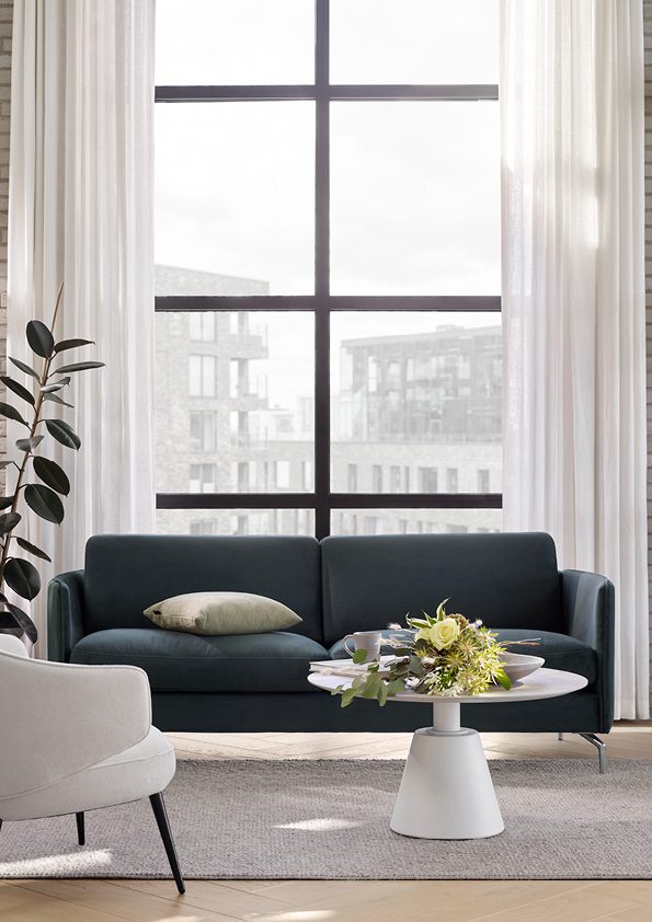 Creado por el diseñador insignia de la marca y mundialmente conocido ,Morten Georgsen, este sofá de salón bajo y flotante, atractivo y de carácter fuerte, está inspirado en el mobiliario italiano de alta gama en el que la clave es la comodidad. “La tendencia de la forma orgánica es evidente en la forma exterior del brazo, que se presenta con espuma cortada en forma de diamante para crear una forma suave y redondeada, al igual que en los cojines de respaldo que tienen una pequeña curva en la parte superior para enfatizar la suavidad.”