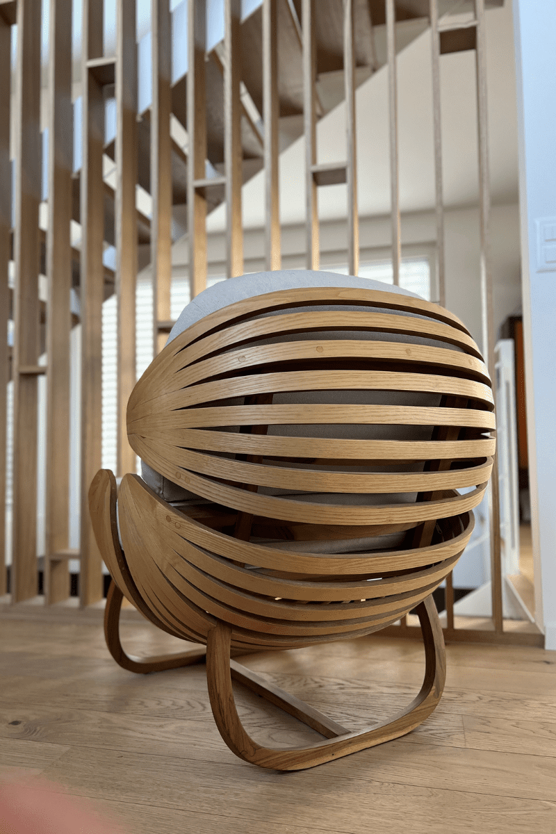 «La silla, inspirada en el armadillo, tenía la intención de ser una poltrona cómoda que evocara el abrazo de un caparazón. No debía ser muy grande ni aparatosa para que funcionara como complemento en una sala”. Así, su intención fue diseñar una pieza que además de guardar la estética fuera un reto en cuestión de diseño y fabricación.