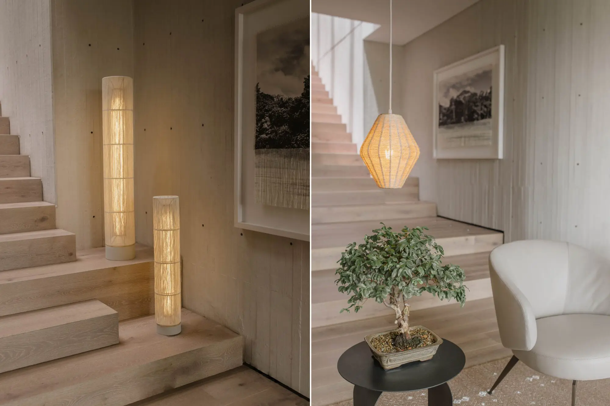 Su más reciente colección, Raíces, encapsula esta filosofía. Esta serie de lámparas tubulares de mesa y piso está inspirada en la firmeza y la ligereza de elementos como el bambú, la guadua y la palma.