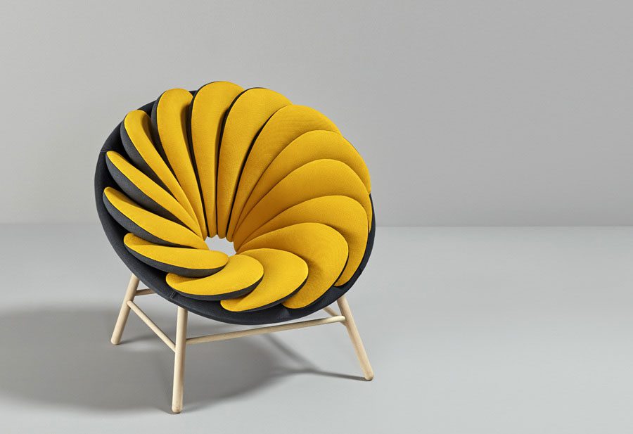 Catorce cojines bicolores superpuestos son la esencia de esta silla, diseñada por el francés Marc Venot, los cuales generan un juego visual que permite que el objeto “cambie” de color dependiendo del ángulo de donde se observe.