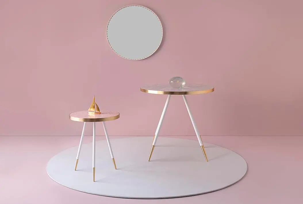 Las mesas redondas y de diferentes alturas, que incluyen un prototipo más alargado, fueron hechas en mármol pulido y laqueado, con un diseño diferenciador dado por una gama de colores entre los que están el verde, blanco, rosa y negro. La serie está disponible con bases de un solo color o en versiones de dos tonos que contrastan y le dan un toque y una expresividad única.