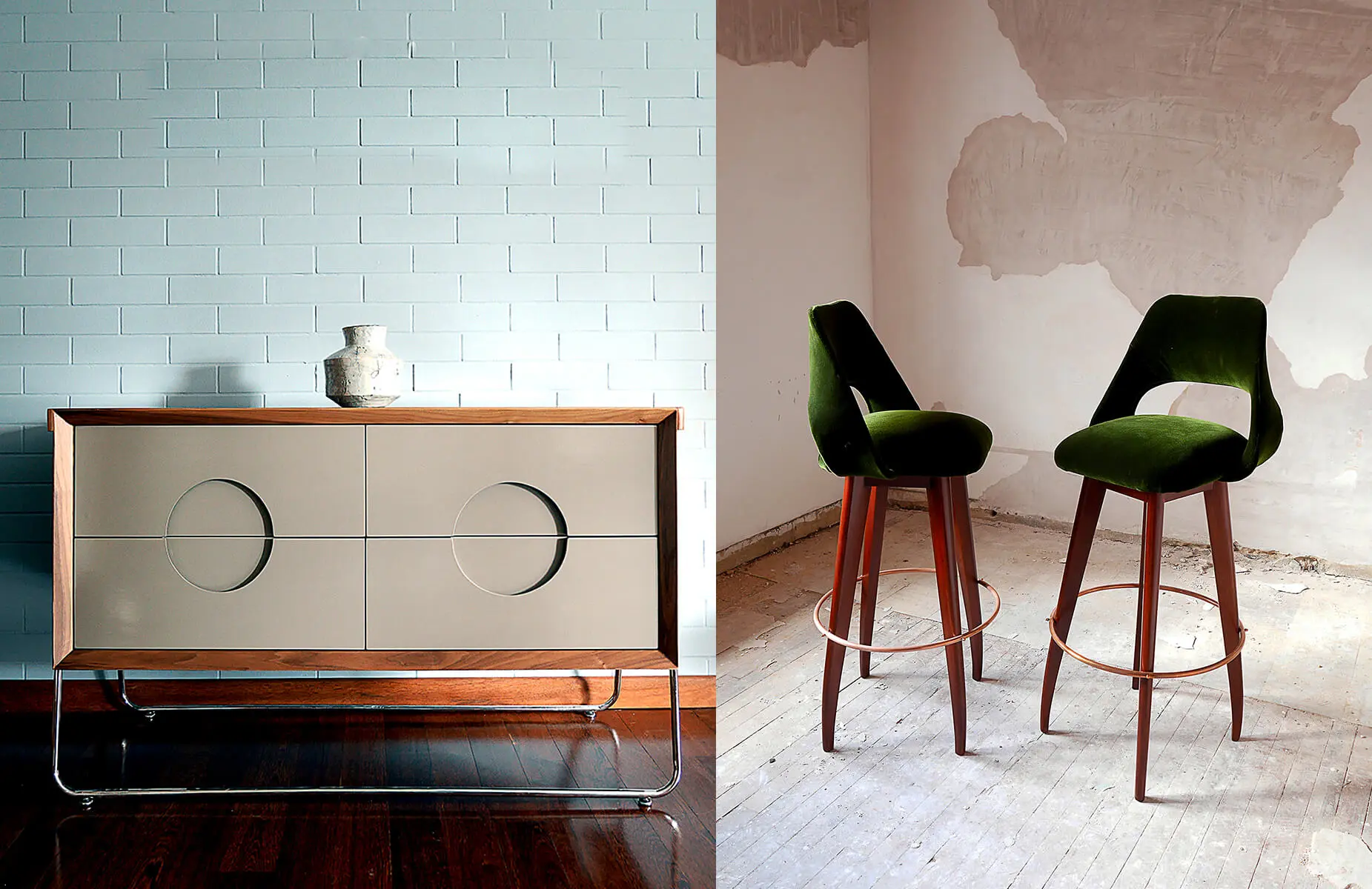 Mauricio Cian y Carlos Saldarriaga son diseñadores industriales de la Universidad Jorge Tadeo Lozano, quienes convergen en la necesidad de crear piezas que evoquen la calidad de los movimientos históricos primordiales del diseño, y al mismo tiempo propongan nuevas estéticas.