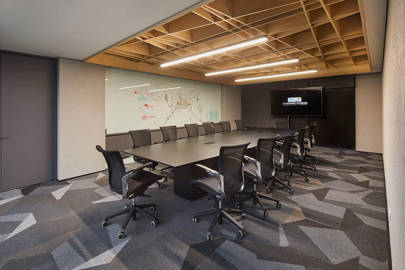 El color naranja, característico de Morphosis Arquitectura y Diseño, es utilizado en los vidrios de zonas puntuales. Además, los techos a la vista acompañados de rieles marcan un toque industrial, donde “perimetralmente los volúmenes generan una geometría con aristas vivas”. Esta propuesta tuvo como equipo al diseñador industrial Armando Fuentes y los arquitectos Eduardo Fuentes y Carlos González.