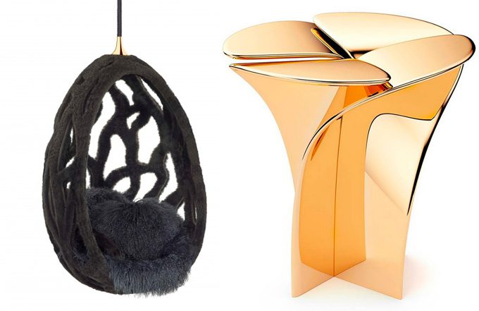 Esta colección, se renueva constantemente y para este año, la marca invitó al diseñador japonés Tokujin Yoshioka quien presentó el taburete Blossom. Una estructura de cuatro pétalos que representa el icónico monograma de la marca. Para complementar, Objets Nomades re-edito la silla colgante Cocoon en piel de Los Hermanos Campana.