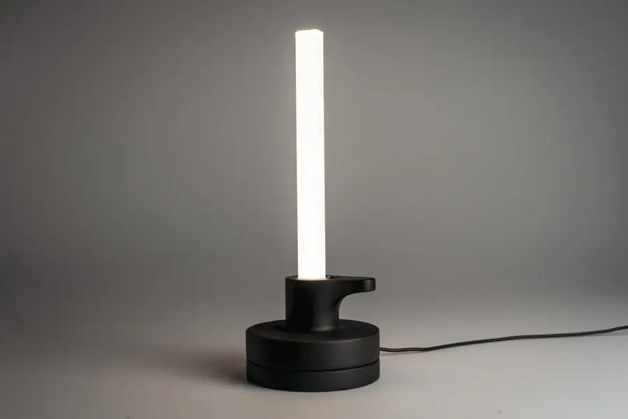 JoJo por Sofia Souidi JoJo es una lámpara que se enrolla con una cuerda y emite una luz brillante y cálida. Dentro de un corto período de tiempo, la luz se atenúa antes de apagarse. La idea para el proyecto es que el cambio de luz puede crear una sensación de tiempo. La interacción lúdica de tirar para encender la luz recuerda a un yoyo, o «Jo-Jo» en alemán, y le da a la lámpara su nombre y su forma. Crédito de la foto: Sofía Souidi; Koelnmesse.