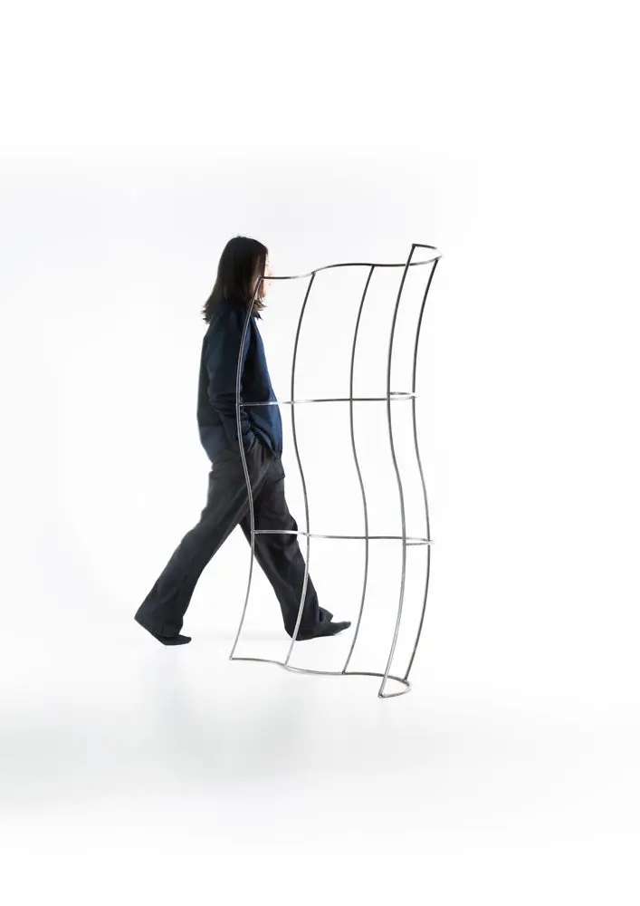 El taburete Udon está hecho de madera maciza de fresno y tiene una estética única adquirida con una máquina CNC 2D. El uso inteligente de la broca del enrutador permite la forma distintiva tanto del asiento como de las patas. El taburete está construido a partir de un total de cinco piezas, que se cortan con una máquina CNC, lo que resulta en un proceso de fabricación altamente eficiente. El taburete tiene como objetivo crear una sensación de diversión utilizando materiales tradicionales y técnicas modernas de fabricación. Crédito de la foto: Anton Mikkonen; Koelnmesse.Un diseño divisor de espacio modular basado en la exploración de curvas y estructuras. La forma fue inspirada y expresa el flujo energético de las olas del mar, que es natural e ilimitado. Esto se hace conectando los arcos en diferentes direcciones para crear un marco ondulado que se parece a una cortina. La estructura permite extensiones de longitud ilimitadas y cambios de dirección. CORTINA, el marco distorsionado permite mirar el espacio desde una perspectiva diferente. Crédito de la foto: Wing Yin Ng; Koelnmesse.