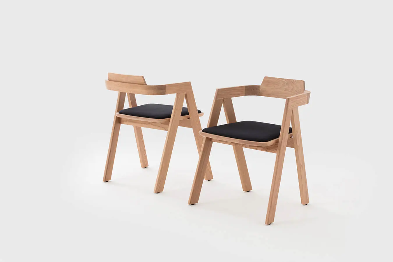 Una pequeña colección de mobiliario de grandes volúmenes y líneas bruscas para el comedor.