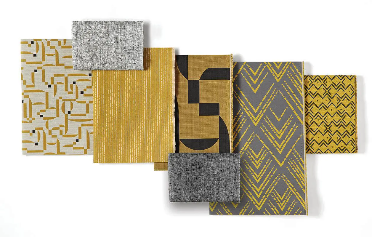 Todos los patrones en la colección Heritage fueron diseñados para trabajar juntos en estilo, escala y color. La amplia variación en la escala y el estilo de diseño ofrece a los diseñadores una gran flexibilidad para utilizar estos diseños de manera creativa pero cohesiva dentro de un espacio. Las opciones de diseño incluyen diseños de pequeña, mediana y gran escala, así como una franja de coordenadas y un sólido con textura. Los nombres de los colores son consistentes en toda la colección para ayudar a los diseñadores a mezclar y combinar los diferentes estilos de patrones.