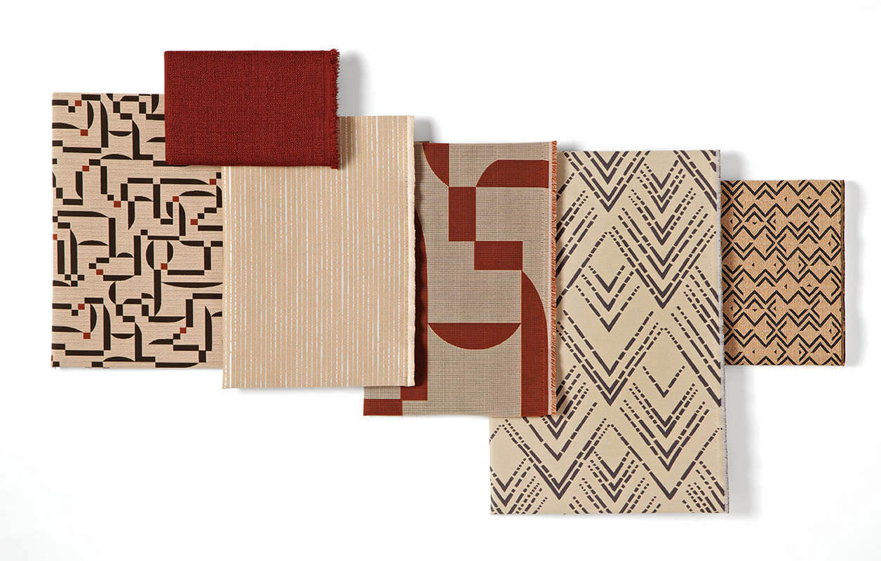 El equipo de diseño de Arc-Com trabajó con paletas de pisos de superficies duras y alfombras actuales (incluidos Shaw, Bentley y Atlas) para facilitar la coordinación con el diseñador. Los patrones son lo suficientemente fuertes para el uso individual o pueden emparejarse fácilmente.