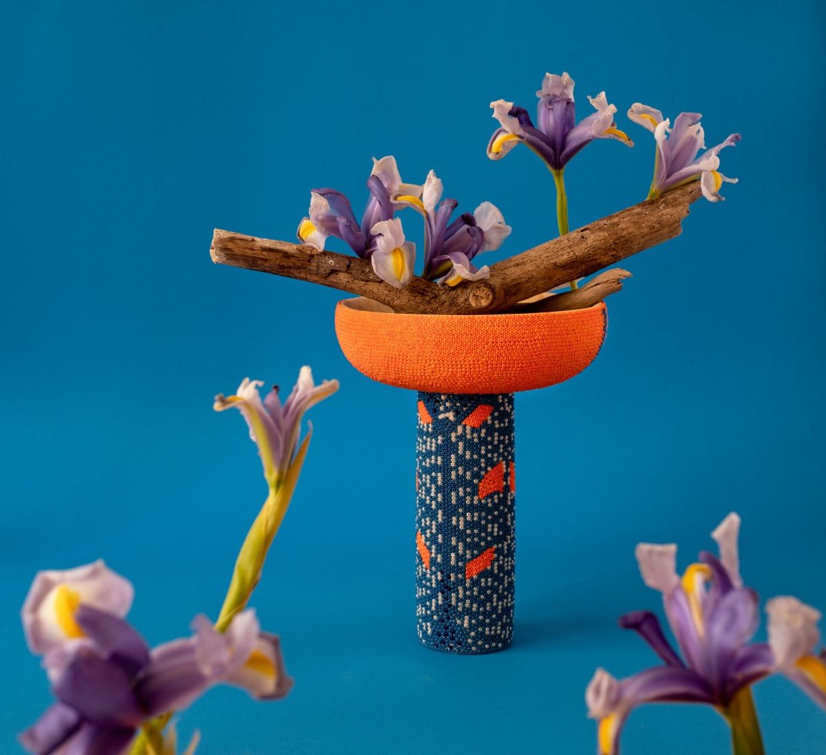 Por su lado, Alta Estudio es una práctica de diseño enfocada en el desarrollo de productos de iluminación, mobiliario y accesorios con un alto componente artesanal. “Con cada colección busco explorar y encontrar alguna conexión con una nueva técnica representativa de la cultura ancestral colombiana. Para Insecta llegué a un trabajo de cocreación con los artesanos de esta comunidad”. Tapias confiesa que este fue un gran experimento, ya que el desarrollo de los objetos se hizo de forma remota debido a las restricciones en la movilidad a causa de la pandemia. “Nos comunicábamos por teléfono, yo les enviaba los diseños con la disposición y gama cromática de cada chaquira y ellos se encargaban de interpretar estos en las piezas físicas. Fue un reto, pero dio grandes frutos, surgió una generosa y respetuosa relación entre diseñador y artesano”.