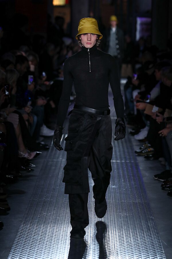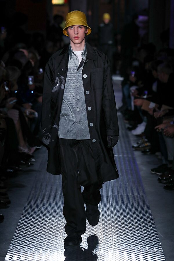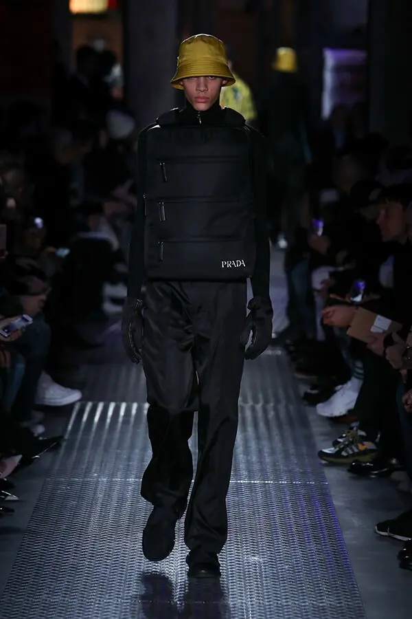 “La referencia clave para mi propuesta es el chaleco de pesca, que representa la idea de una bolsa (que es para lo que se ha utilizado principalmente el material de nylon) como prenda de vestir. Mi primer pensamiento fue recrear el famoso chaleco de pesca de Joseph Beuys (artista alemán) en Prada Black Nylon. Luego trabajé en dos modelos que interpretan el tema de una manera más abstracta: Delantal y Capucha”, explica el diseñador alemán. Estas prendas están compuestas por múltiples bolsillos para aumentar su versatilidad (en Delantal incluso llegan debajo de la rodilla). En esencia, son objetos útiles más que decorativos. Grcic ha colaborado con firmas como Magis y Herman Miller, entre otras. Por ejemplo, en nuestra Edición de Aniversario del año pasado (AXXIS 284) reseñamos su sofá Soft Props, para la compañía Cassina, como uno de los 10 mejores diseños internacionales de 2017. Es un sistema modular que se adapta a las diferentes configuraciones de un espacio. En palabras del diseñador, “es una pieza de mobiliario abstracta que puede usarse en ambientes privados o públicos”.