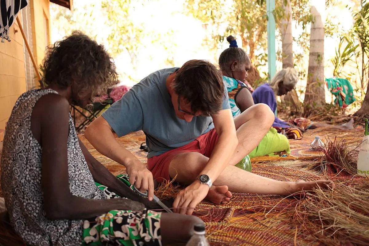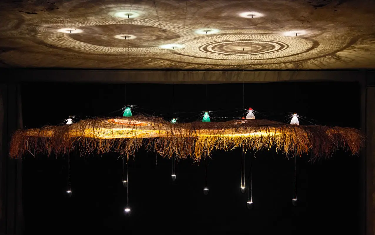 Las piezas finales son el fruto de seis intensas semanas de taller y convivencia con un grupo de talentosos artistas indígenas tejedores del Bula’Bula Arts Center en Ramingining. ¨Se nos ha revelado un universo completo de relaciones familiares específicas y reglas ancestrales que sirvió de inspiración para la evolución del proyecto hacia un trabajo social y de colaboración”, comenta el diseñador refiriéndose a la inmersión que puedo experimentar con la cultura aborigen. “Las piezas finales han sido constantemente nutridas por la genuina realidad de los tejedores indígenas, la amplia gama aborigen de parentesco y nuestros encuentros previos con las pinturas aborígenes. Descubrir «Yukuwa» (Feather string yam vine), 1984, una obra de arte de Frances Djulibing, también sirvió como punto de partida conceptual para unir las pantallas de lámparas”, añade.