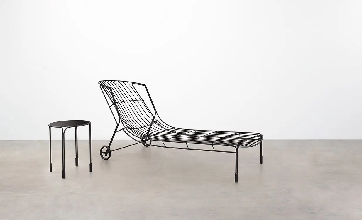 La pieza central de la colección es la asoleadora Tidal, que se ha convertido en la favorita de muchos entusiastas del diseño. Aunque parece apenas un dibujo en el espacio, está construida de acero inoxidable, dándole una resistencia sorprendente al clima y la abrasión. “Está inspirada en el rizo de la ola perfecta, en ese lugar del mar donde los surfistas esperan atentos. Mi intención es tomar esas formas efímeras y transformarlas en objetos estéticos y funcionales”, explica Jansen.