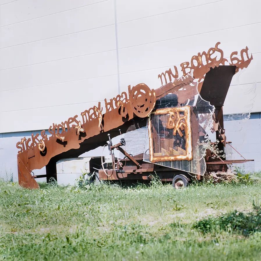 La máquina «Sticks and Stones» (1987) destaca la exposición en Weil am Rhein. Al «comer» sillas y objetos de metal y luego arrojarlos en forma de cubos prensados, el artilugio realiza un acto de deconstrucción a través del cual Arad arroja una luz crítica sobre nuestra cultura de consumo al tiempo que cuestiona el papel del diseñador. Recientemente restaurada, la máquina se pondrá en funcionamiento por primera vez desde principios de los años noventa. Se exhibirá frente al Vitra Schaudepot durante la exposición.