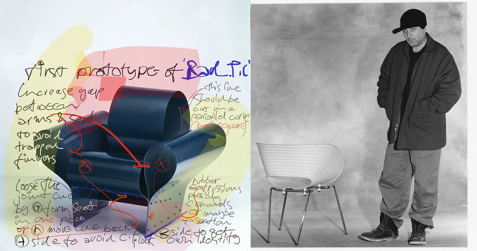 La exposición monográfica del Museo Vitra Design sobre Ron Arad: ¡Sí a lo inusual! «Ofrece una visión general de su obra tan diversa. Esta presentación en el Vitra Schaudepot incluye numerosos diseños tempranos de la década de 1980, cuya energía bruta estableció la reputación internacional de Arad como una estrella en ascenso. El programa también incluye objetos más recientes resultantes de la transferencia directa de su enfoque experimental a productos fabricados en serie.