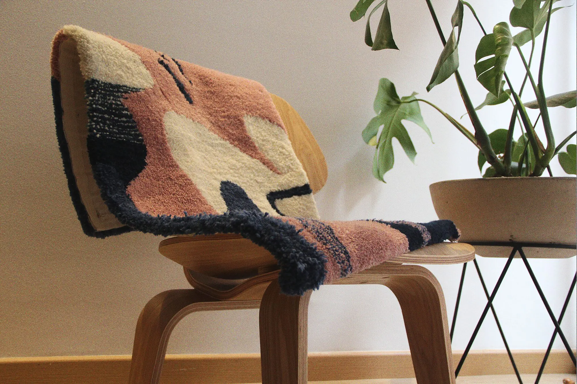 Hilar Estudio tiene varias herencias de esa tradición familiar. Una de ellas es el trabajo artesanal, hecho a mano, de manera personalizada y con procesos cuidadosos. Las técnicas que emplean para fabricar los tapetes y tapices se llaman hand-tufting y punch needle, métodos usados en diferentes partes del mundo. Ambas técnicas tienen en común que no utilizan nudos, sino una base de tela que se atraviesa con hilos.