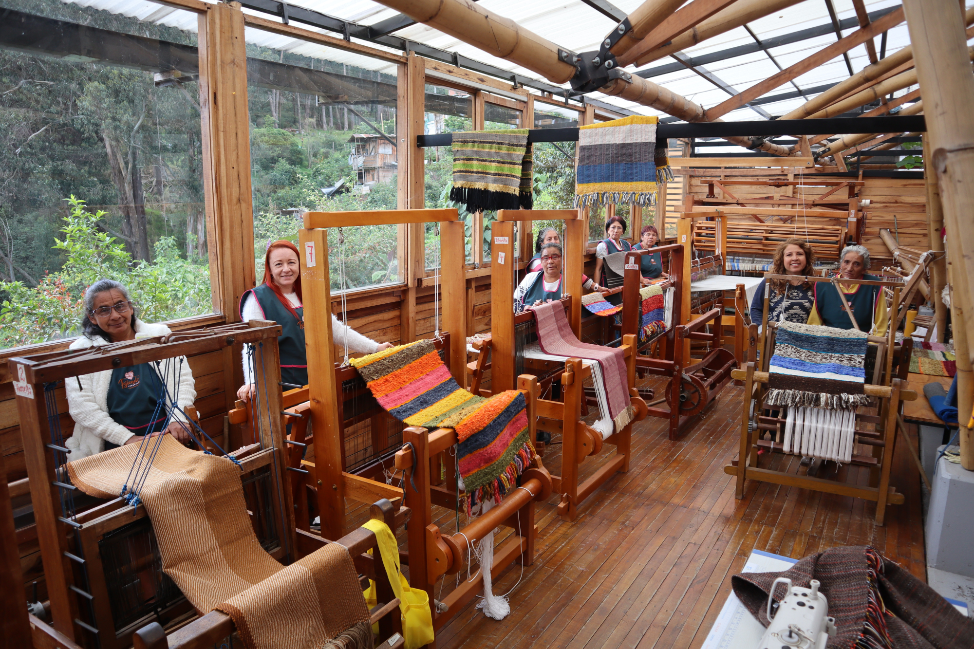 La otra puerta, la segunda, conduce al taller de Tejiendo Corazones, donde un grupo de mujeres se dedica a recuperar técnicas de tejido ancestral y a elaborar ruanas, tapetes, mochilas, pulseras y otros objetos de destacada calidad.